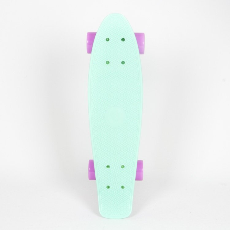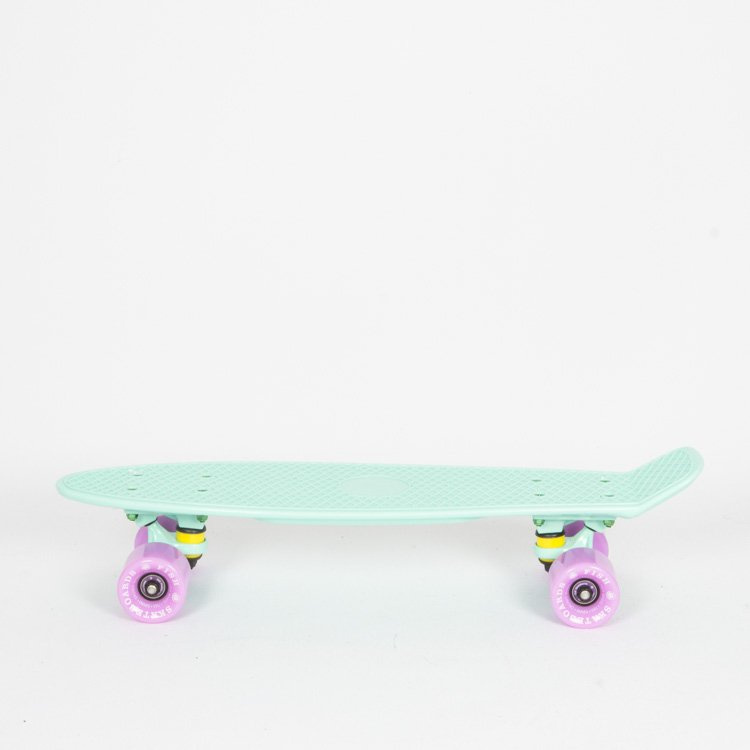 Plastikowa deskorolka Fish Skateboards w kolorze miętowym. Jest to oryginalny produkt od polskiego producenta, nawiązujący do oldschoolowych plastikowych cruiserów z lat 70-80-tych. Fishboard jest idealny dla osób w każdym wieku. Fiszka swoimi wymiarami oraz niską wagą czyni ją mega kompaktową - schowasz ją do plecaka czy bez problemu zabierzesz w każdą podróż, do szkoły czy pracy. Deskorolka jest bardzo wszechstronna i sprawdzi się z pewnościa do miejskiego cruisingu czyli swobodnej, miejskiej jazdy.