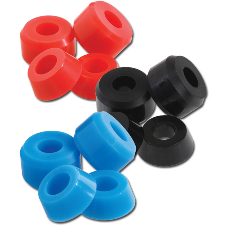 Gumki Enuff PU SHR Cushions wykonane są z wysokiej jakości poliuretanu i zostały zaprojektowane, aby poprawić Twoje doświadczenie jazdy na deskorolce. Dzięki trzem różnym opcjom twardości, którym odpowiadają poszczególnw kolory, możesz dostosować je do potrzeb swojej deskorolki: