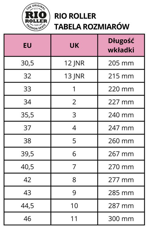 Sprawdź tabelę i dobierz odpowiedni rozmiar!