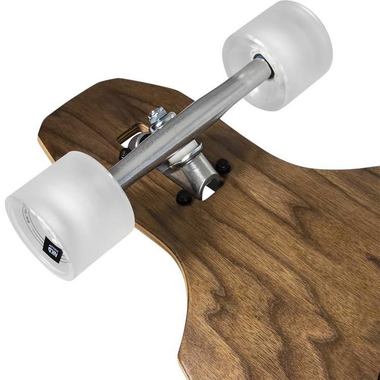 NKX Fearless to uniwersalna konfiguracja typu allround longboard. Deck został wykonany z kanadyjskiego klonu, jest on drewnem o bardzo wysokiej wytrzymałości i elastyczności. Blat posiada 7 warstw tego drewna, które zostało spojone ze sobą poprzez laminowanie termiczne, dzięki czemu posiada bardzo dobry flex. Symetryczny kształt twin tip z dużymi wycięciami eliminuje tarcie kół o blat przy mocniejszych skrętach oraz pozwala jeździć w obu kierunkach. Umieszczono tu bardzo dobrej jakości trucki NKX Flow Deluxe o szerokości 180mm, które zamontowane są w systemie drop thru - dzięki temu blat znajduje się bliżej ziemi. Wszystko to pozwoli łatwo kontrolować deskę - odpychanie się na niej również nie stanowi najmniejszego problemu!