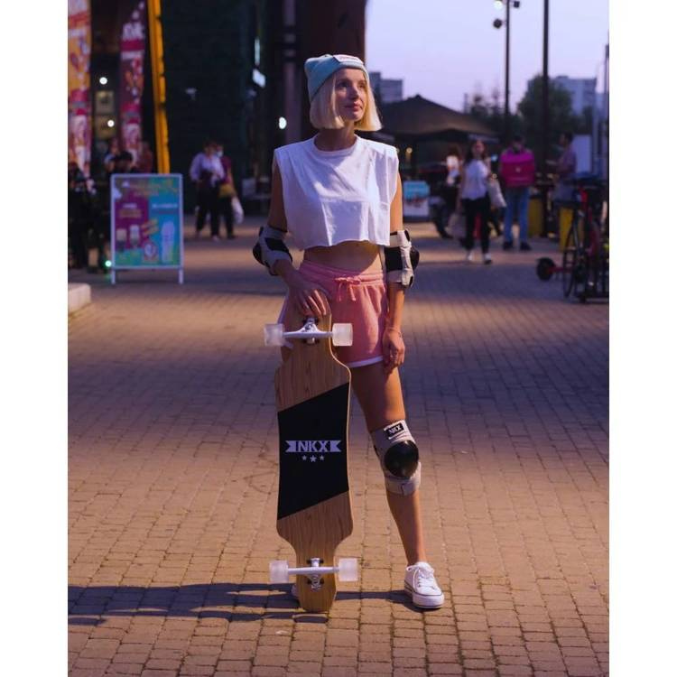 NKX Fearless to uniwersalna konfiguracja typu allround longboard. Deck został wykonany z kanadyjskiego klonu, jest on drewnem o bardzo wysokiej wytrzymałości i elastyczności. Blat posiada 7 warstw tego drewna, które zostało spojone ze sobą poprzez laminowanie termiczne, dzięki czemu posiada bardzo dobry flex. Symetryczny kształt twin tip z dużymi wycięciami eliminuje tarcie kół o blat przy mocniejszych skrętach oraz pozwala jeździć w obu kierunkach. Umieszczono tu bardzo dobrej jakości trucki NKX Flow Deluxe o szerokości 180mm, które zamontowane są w systemie drop thru - dzięki temu blat znajduje się bliżej ziemi. Wszystko to pozwoli łatwo kontrolować deskę - odpychanie się na niej również nie stanowi najmniejszego problemu!