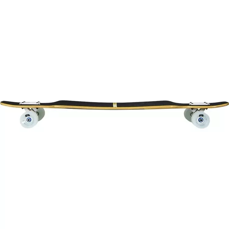 NKX Fearless to uniwersalna konfiguracja typu allround longboard. Deck został wykonany z kanadyjskiego klonu, jest on drewnem o bardzo wysokiej wytrzymałości i elastyczności. Blat posiada 7 warstw tego drewna, które zostało spojone ze sobą poprzez laminowanie termiczne, dzięki czemu posiada bardzo dobry flex. Symetryczny kształt twin tip z dużymi wycięciami eliminuje tarcie kół o blat przy mocniejszych skrętach oraz pozwala jeździć w obu kierunkach. Umieszczono tu bardzo dobrej jakości trucki NKX Flow Deluxe o szerokości 180mm, które zamontowane są w systemie drop thru - dzięki temu blat znajduje się bliżej ziemi. Wszystko to pozwoli łatwo kontrolować deskę - odpychanie się na niej również nie stanowi najmniejszego problemu!