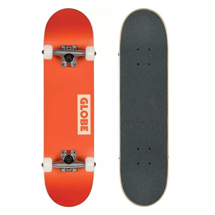 W serii GLOBE Kids Goodstock w oczy od razu rzuca się niesamowicie prosty, jednak przyciągający oko minimalistyczny design. Spodnia część decku z matowym wykończeniem wysokiej jakości w jednolitym kolorze z nałożonym logo GLOBE. Wybierz swój rozmiar oraz kolor deski, zawiąż sznurówki, postaw stopy na decku i ruszaj na skatepark. Skill jeszcze nigdy sam się nie nabił.