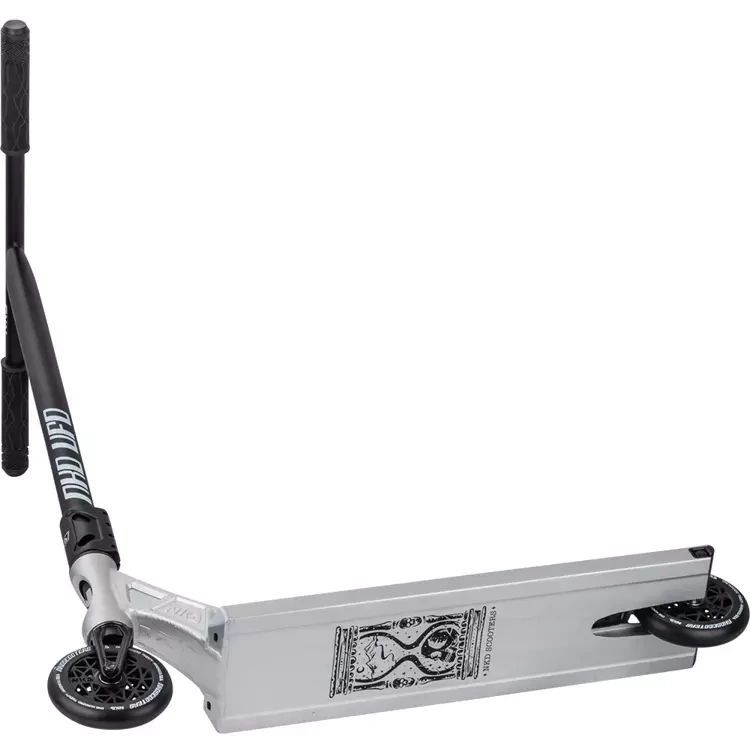 Hulajnoga Wyczynowo - Streetowa NKD UFO to hulajnoga idealna dla riderów średnio i bardziej zaawansowanych. W modelu UFO deck został wykonany z aluminium, natomiast kierownica wykonana została ze stali chromowej - dzięki użyciu tych materiałów hulajnoga jest jednocześnie bardzo wytrzymała i wyjątkowo lekka (waży jedyne 4260g). Dzięki niskiej masie możemy zdecydowanie łatwiej wykonywać triki w trakcie lotu nie odczuwając przy tym dużej bezwładności ciężkiej hulajnogi. Model ten charakteryzuje się również wyjątkowo dobrym prowadzeniem i wyczuciem podczas trików w stylu ulicznym, ale sprawdzi się również w zwyczajnym skateparku!