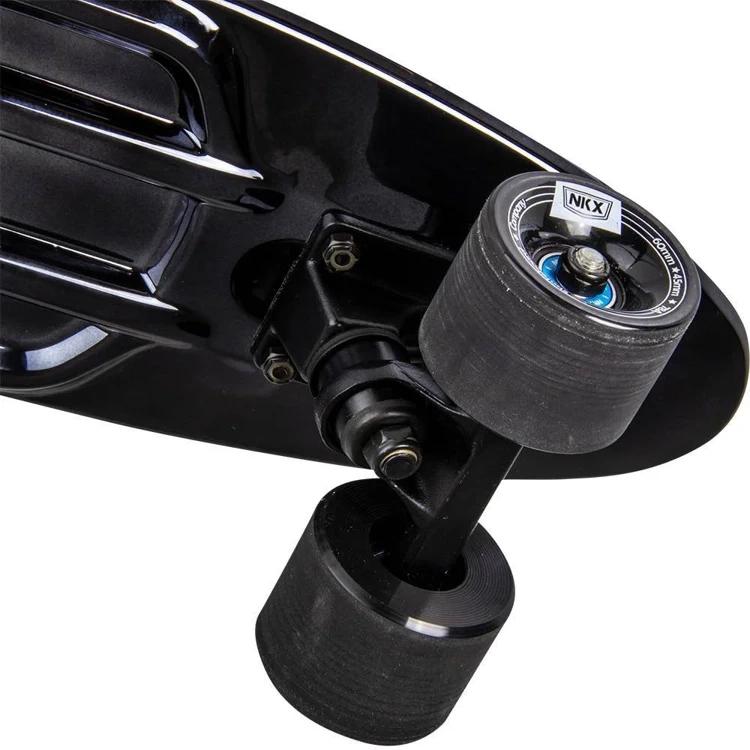 Fiszka to solidny przedstawiciel swojego gatunku desek do codziennych przejażdżek lub dojazdów miejskich w zminiaturyzowanej wersji. Często marki produkujące fiszki stawiają na przetestowany latami design, nie dodając żadnych wyróżniających zawartości do swoich modeli. NKX nie jest jedną z tych marek. 22” jest dostępny w czterech różnych, przyciągających wzrok malowaniach. Wybierz swój ulubiony paint spośród Eleganckich “Black”,”Black-Gold”, “Metallic-SIlver” oraz pogodnego “Glow-Blue” i wyrusz na podbój miasta w stylu z 22” od NKX!
