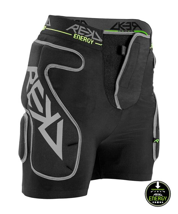 Shorty od Rekd wyposażone są w 4 symetrycznie umiejscowione rodzaje powierzchni ochronnych. W ich skład wchodzą ochraniacze pośladków, przednie ochraniacze ud, tylne ochraniacze mięśni dwugłowych nogi i ochraniacz kości ogonowej, który jest wymienialny. Konstrukcja spodenek zapobiega samoistnemu podciąganiu się nogawek podczas jazdy, co trzyma ochraniacze na swoich miejscach. Energy Impact od REKD to wszechstronna opcja ochronna, która nadaje się do użytku we wszelkich dynamicznych sportach, dzięki jej ergonomicznemu designowi.