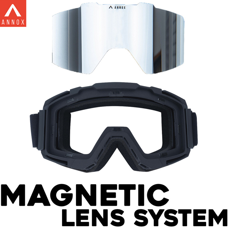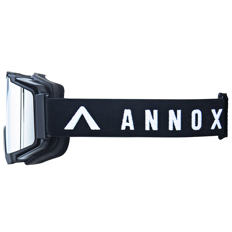 Te gogle narciarskie są wykonane z odpornego na wstrząsy tworzywa sztucznego z elastycznym paskiem 39 mm z estetycznie wyszytym logo Annox. Gogle te nadadzą się świetnie do wielu sportów zimowych, dzięki swojemu potrójnie podbitemu pianką wnętrzu, które wygodnie przylgnie do każdego typu twarzy. Ten model umożliwia wielogodzinną rekreację, bez ucisku przypominającego o sprzęcie na głowie.