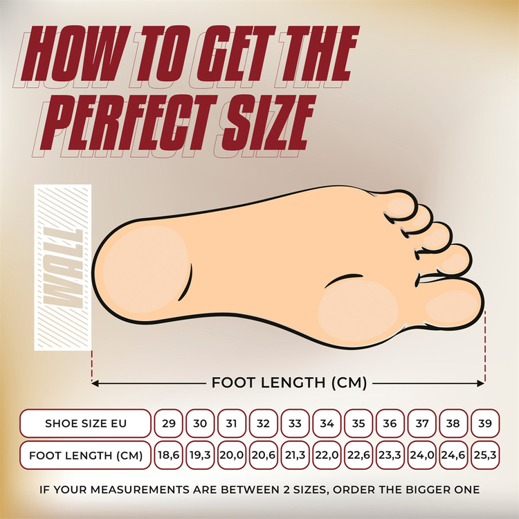 Aby dobrze dobrać rozmiar swoich nowych Breezy Rollers zmierz długość swojej stopy - zrób to mierząc od wysokości pięty do wysokości dużego palca. Następnie do otrzymanej wartości dodaj 2 cm - otrzymany wynik będzie odpowiednim dla Ciebie rozmiarem wkładki Brezzy Rollers. Sprawdź jakiemu rozmiarowi buta odpowiada otrzymany rozmiar wkładki. Jeżeli wynik, który otrzymałeś waha się pomiędzy dwoma rozmiarami buta, to zawsze decyduj się na rozmiar większy!