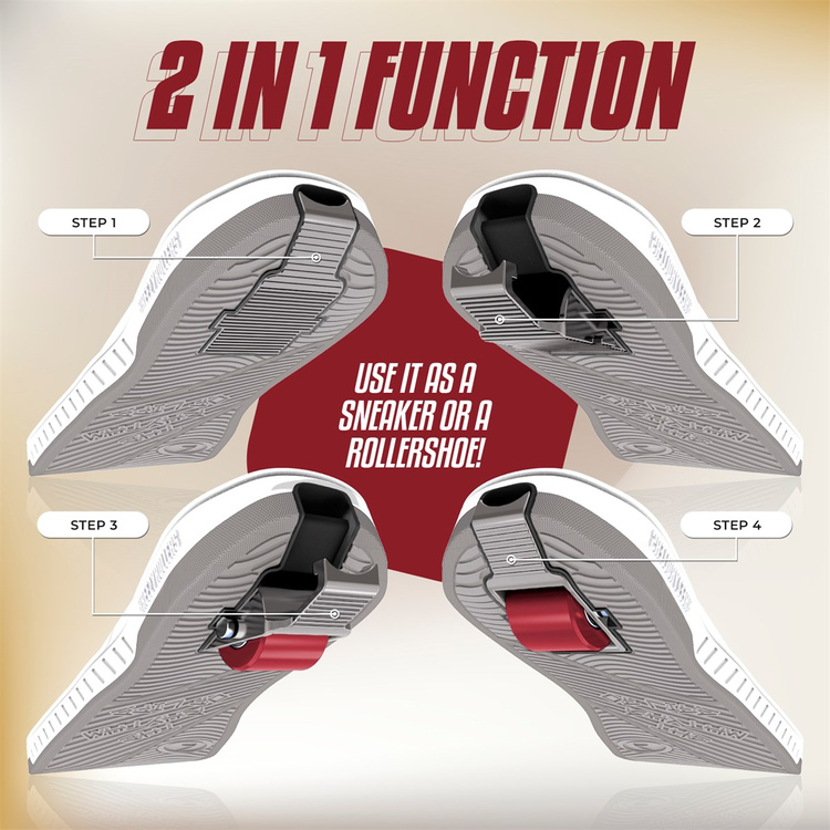 Opatentowany system kółek umożliwia niższe umieszczenie koła, co ułatwia utrzymanie stóp w pozycji równoległej do ziemi. Rolki ukryte w sneakerach to świetny i nowoczesny sposób na dyskretne przenoszenie ze sobą swoich śmigaczy w dowolne miejsce! Złap każdy zjazd z górki jaki znajdziesz na swoich heely’ch od Breezy Rollers!