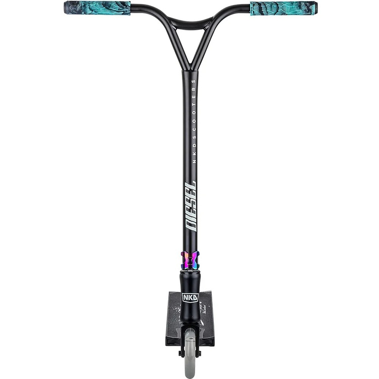 Konstrukcja hulajnogi NKD Diesel składa się z niezwykle mocnej kierownicy Y-bar, wykonanej ze stali chromowej 4130 oraz szyjki, która jest jedną z najlepiej sprzedających się i najmocniejszych na rynku. Szyjka ta posiada świetną amortyzację oraz zdolność do wytrzymywania twardych lądowań zarówno cięższych, jak i lżejszych użytkowników wykonujących tricki w powietrzu.