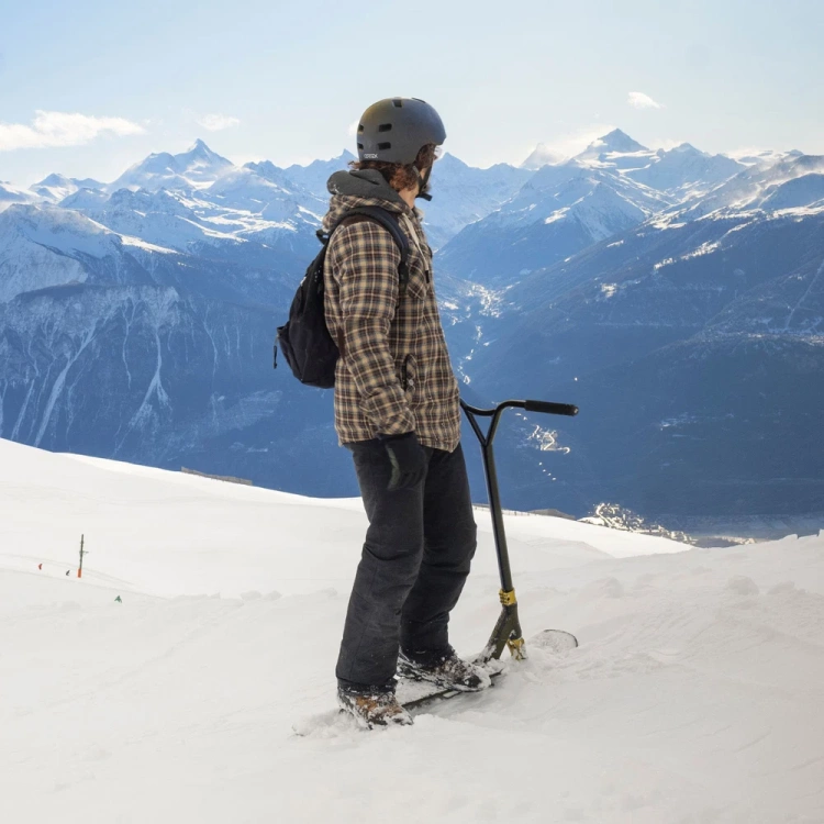 • NKD Pro Snow to innowacyjna hulajnoga wyczynowa z ruchomym widelcem do jazdy i wykonywania tricków na śniegu. Wyposażona w profesjonalne deski snowboardowe oraz deck do hulajnogi, dzięki czemu łączy w sobie najlepsze cechy hulajnogi i snowboardu.
