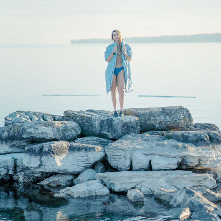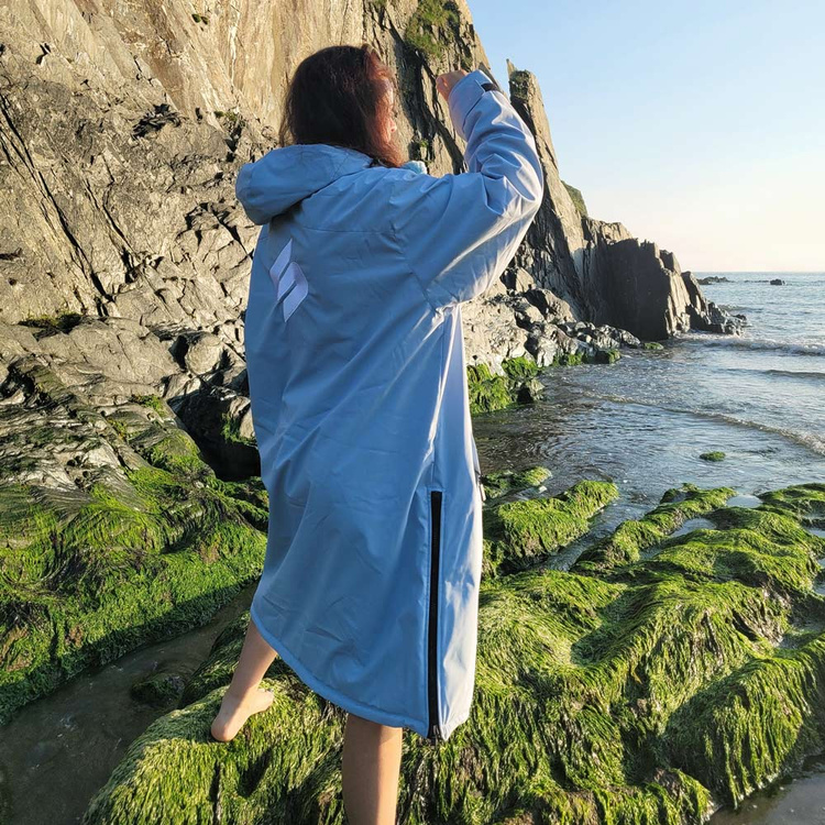 Story Change Robe to kurtka z długim rękawem sięgającym do kolan, która stanowi idealne rozwiązanie zarówno po zimowym morsowaniu, jak i po sesji surfingu, pływaniu, kajakarstwie czy nurkowaniu. Dzięki wodoodpornej i wiatroszczelnej warstwie zewnętrznej poncho doskonale sprawdza się w trudnych warunkach atmosferycznych. Świetnie ogrzewa po kąpieli w zimnym morzu, osłania przed chłodnym wiatrem na plaży oraz zapewnia komfort w trakcie jazdy na rowerze czy spacerów w deszczu.