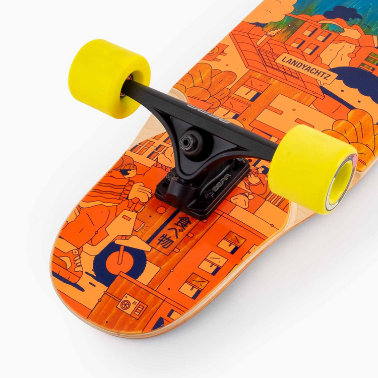 Kształt tej dechy został specjalnie zmodyfikowany by zlikwidować wheelbite we współpracy z nowymi, gładkimi truckami Gen 6 Grizzly. Siedmiowarstwowa konstrukcja klonowego blatu zapewnia sprężysty flex, który zachowa dużo pędu po wykonaniu skrętu, ale wciąż będzie oddawał pewne czucie po wylądowaniu tricku.