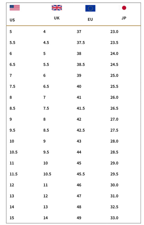 Zobacz tabelę rozmiarów butów Emerica obok i dobierz odpowiedni rozmiar!