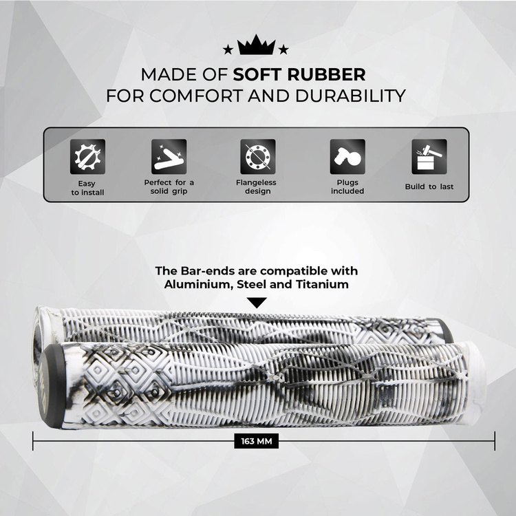 - Barendy w zestawie – kompatybilne z kierownicami aluminiowymi, stalowymi i tytanowymi