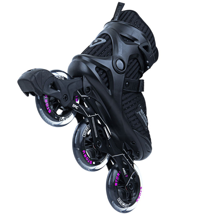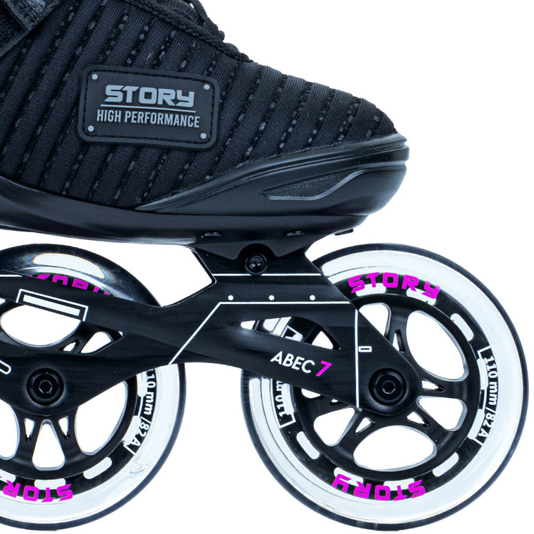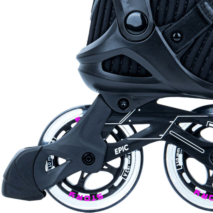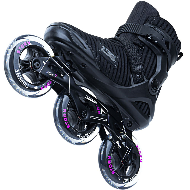 • Story Epic to lekkie, trójkołowe, dynamiczne i świetnie wyglądające rolki z wygodnym półmiękkim butem i wysoką cholewką. Wyposażone w trzy koła o średnicy mają 110 mm idealne do miasta, na przejażdżkę i na trening – dla tych, którzy żyją w ruchu.