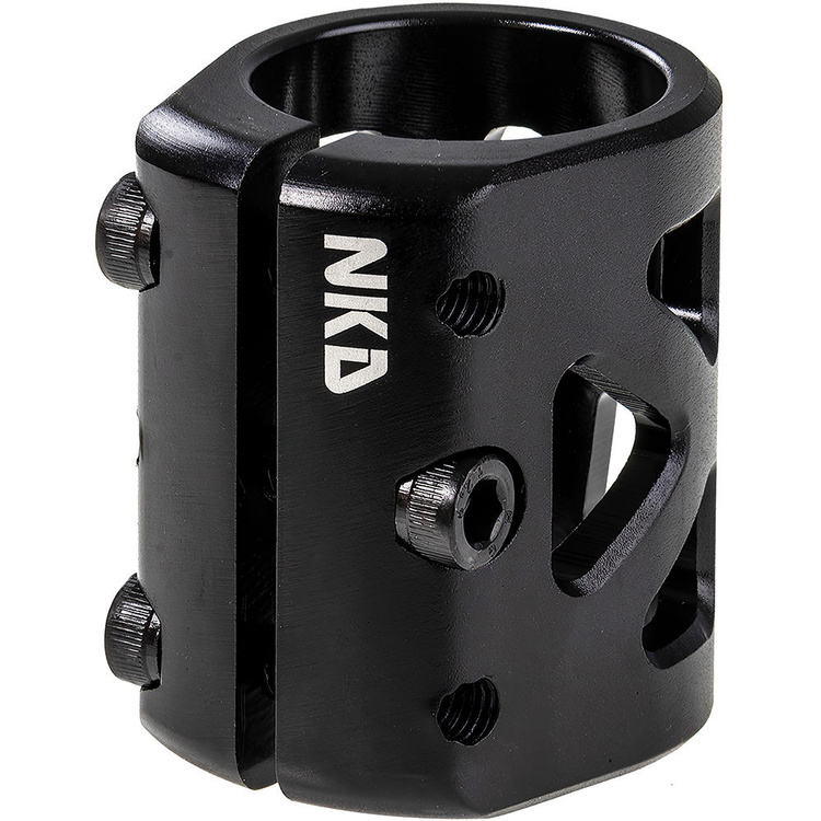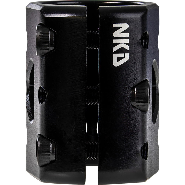 • NKD Octane Clamp to potrójny, lekki zacisk do hulajnogi wyczynowej z aluminiową, bardzo wytrzyma konstrukcją, którą daje pewność trzymania kierownicy przy każdym tricku. Kompatybilny z systemami HIC, IHC i ICS.