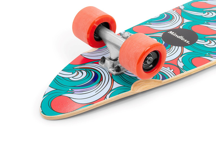 • Mindless Swift Pintail to zwinny longboard o długości 91,44 cm, idealny do miejskiej jazdy i płynnych skrętów. Wyposażony w trucki Gen X i miękkie kółka, co zapewnia komfort i kontrolę na każdym przejechanym metrze.