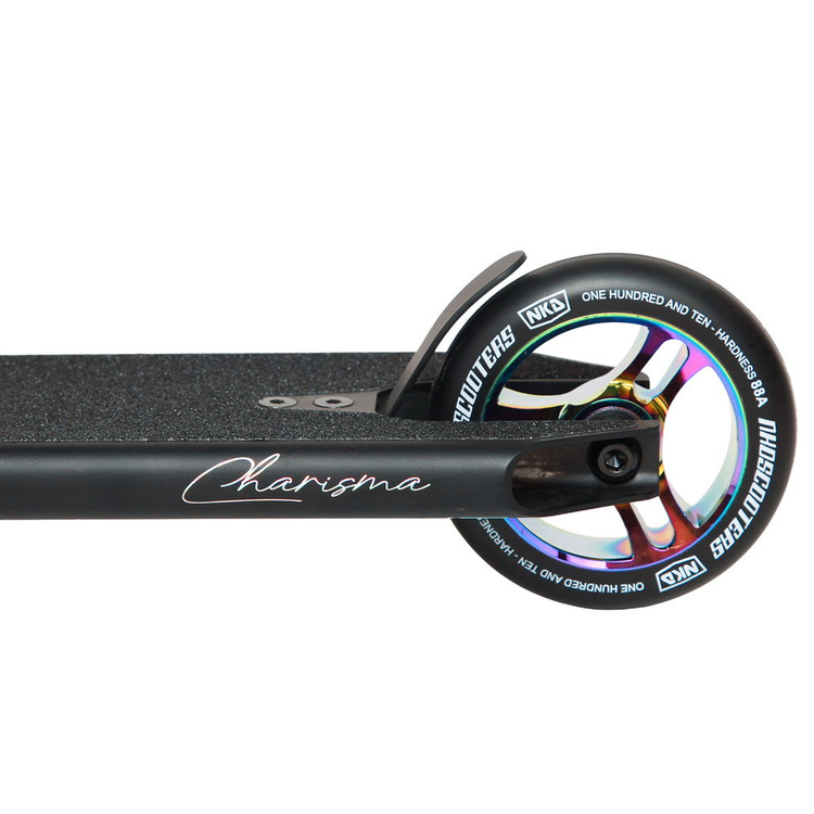 Hulajnoga wyczynowa NKD RIZZ "Charisma" to idealny wybór dla ridera, który szuka sprzętu łączącego profesjonalne osiągi z lifestyle’owym charakterem. Dzięki wyjątkowo lekkiej konstrukcji i najwyższej klasy komponentom, ten model daje maksymalną swobodę ruchu, precyzję i komfort – zarówno podczas intensywnych sesji w skateparku, jak i swobodnej jazdy po mieście. Została przetestowana i zatwierdzona przez team NKD, co gwarantuje niezawodność i jakość, której możesz zaufać każdego dnia. Dopracowane detale, jak frezowany widelec, spawany deck i podcięcia zwiększające wytrzymałość, sprawiają, że każdy element tej hulajnogi ma swoje zadanie. RIZZ "Charisma" nie tylko świetnie wygląda, ale też odpowiada na potrzeby tych, którzy chcą wyrażać siebie przez ruch, styl i dynamikę. Wybierz sprzęt, który nadąża za Twoim tempem.