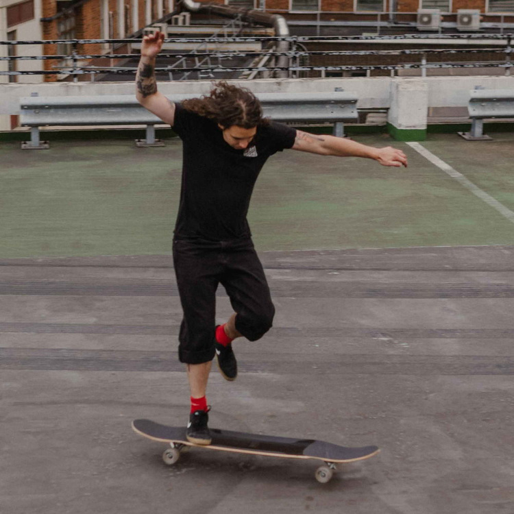 - Griptape: o średniej szorstkości – umożliwia zarówno poślizg w środkowej części, jak i stabilizację na nose/tailu