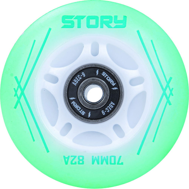 • Story Wheels to lekkie, trwałe i efektowne koła do rolek o twardości 82A z szybkimi łożyskami ABEC-9, zaprojektowane w trzech różnych średnicach: 64 mm, 70 mm i 74 mm. Dostępne w wielu kolorach, także w wersjach świecących. W zestawie komplet 8 sztuk.