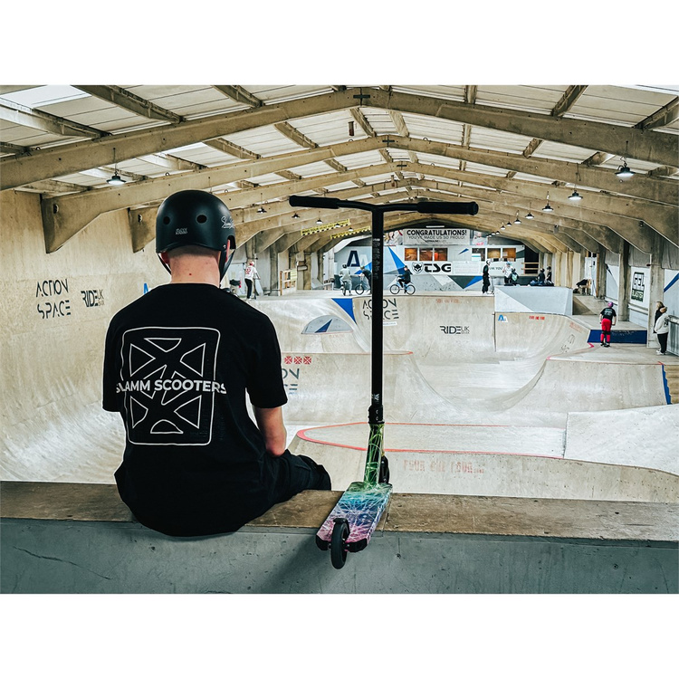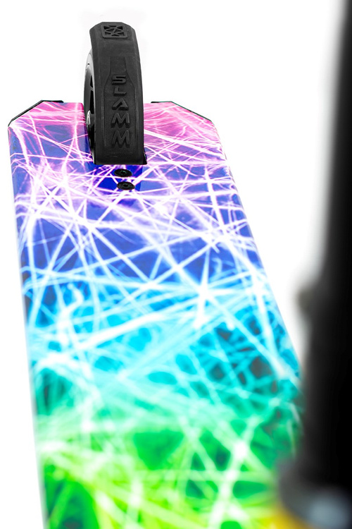 Hulajnoga wyczynowa Slamm Strobe to sprzęt dla tych, którzy nie chcą się zatrzymywać – ani w rozwoju, ani w zabawie. Solidna, lekka i perfekcyjnie wyważona, daje pełną kontrolę nad każdym trickiem w skateparku i na ulicy. Wyposażona w zaawansowane rozwiązania techniczne, które zwiększają jej wydajność i spełniają oczekiwania najbardziej wymagających riderów. To wybór dla zajawkowiczów, którzy chcą podnosić poprzeczkę oraz miejskich sportowców, ceniących jakość i design w codziennym stylu życia. Jej konstrukcja łączy trwałość ze swobodą ruchu, dzięki czemu niezależnie od wieku czy poziomu, możesz cieszyć się jazdą na najwyższym poziomie.