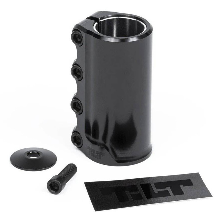 Tilt Rigid SCS to część najwyższej serii Stage III — stworzonej dla riderów, którzy nie uznają kompromisów i chcą kontrolować setup tak samo w skateparku, jak w ruchu miejskim. Podwyższona konstrukcja o wysokości 91,44 mm (3.6”) zwiększa sztywność całego frontu hulajnogi oraz poprawia trzymanie kierownicy przy mocnych lądowaniach i szybkiej zmianie kierunku. Dzięki aluminium 6061-T6 i precyzyjnym odelżeniom wewnętrznym zacisk pozostaje lekki — jedynie 252 g — co pozwala zachować pełną kontrolę i tempo jazdy bez nadmiernego obciążenia sprzętu.