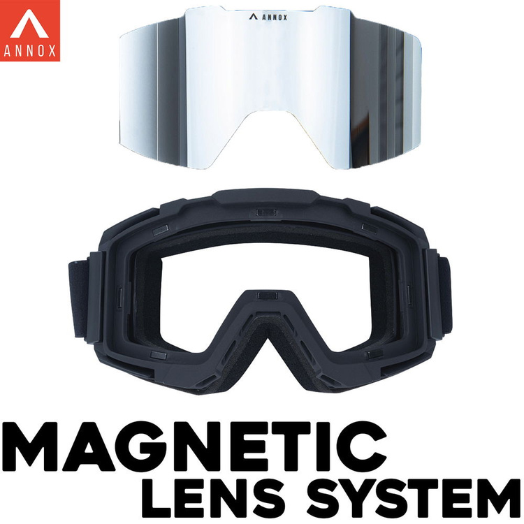 Te gogle narciarskie są wykonane z odpornego na wstrząsy tworzywa sztucznego z elastycznym paskiem 39 mm z estetycznie wyszytym logo Annox. Gogle te nadadzą się świetnie do wielu sportów zimowych, dzięki swojemu potrójnie podbitemu pianką wnętrzu, które wygodnie przylgnie do każdego typu twarzy. Ten model umożliwia wielogodzinną rekreację, bez ucisku przypominającego o sprzęcie na głowie.