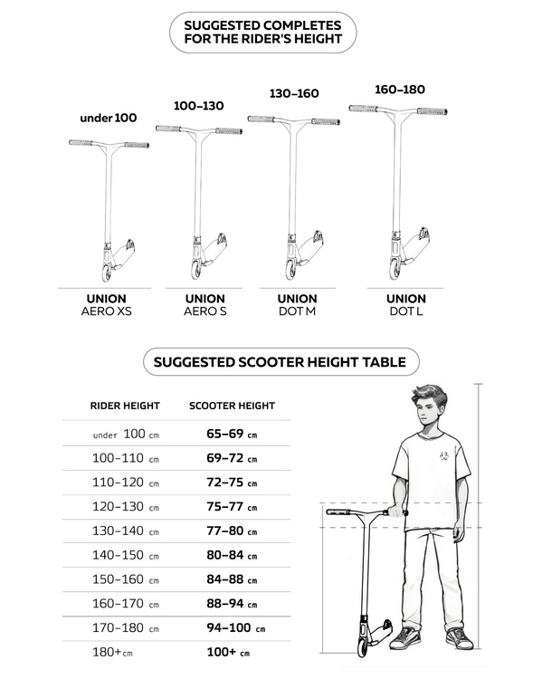 Szukasz sprzętu, który pozwoli Ci wycisnąć maksimum z każdego tricku? Union Aero już jest! Ta lekka jak piórko hulajnoga waży jedynie 2,78 kg, co czyni ją najlżejszą seryjnie produkowaną hulajnogą wyczynową na świecie! Taka waga to nie tylko imponujący wynik – to zupełnie nowy poziom kontroli nad trickami, zwrotnością i płynnością jazdy. Dla ridera, który traktuje hulajnogę nie tylko jako sprzęt, ale jako część swojego stylu życia, to prawdziwy game changer. Lekkość przekłada się na mniejsze zmęczenie podczas intensywnych sesji, większą precyzję przy technicznych trickach i pełną swobodę działania. Co ważne – mimo ultralekkiej konstrukcji, Union Aero jest niesamowicie solidna i gotowa na każdą przeszkodę, jaką napotkasz w miejskiej dżungli. Hulajnoga Union Aero jest produkowana w trzech rozmiarach: rozmiar M o wysokości 85 cm, rozmiar S o wysokości 80 cm oraz Aero XS o wysokości 73 cm. A jej większym odpowiednikiem jest model Dot L o wysokości 90 cm oraz M o wysokości 85 cm.