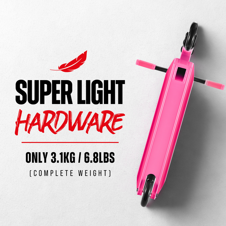 - Waga: 3,1 kg – ultralekka konstrukcja, idealna do nauki rotacji i szybkich tricków bez dużego wysiłku