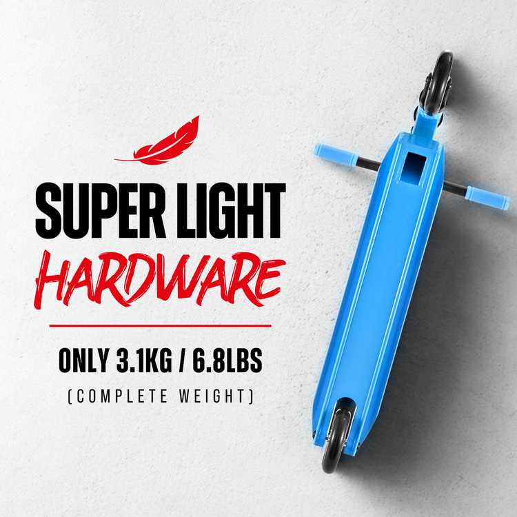 - Waga: 3,1 kg – ultralekka konstrukcja, idealna do nauki rotacji i szybkich tricków bez dużego wysiłku