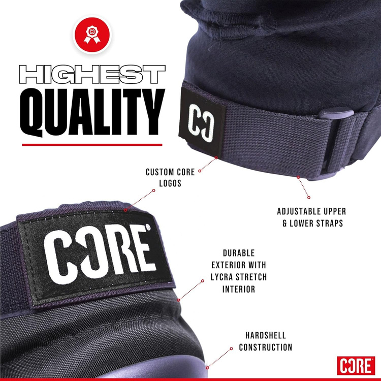 • CORE Street Skate Knee Pads to solidne ochraniacze kolan z twardą skorupą i anatomiczną pianką EVA, zapewniające doskonała ochronę w skateparku i na streetowych spotach. Komfortowe, dobrze wentylowane i przetestowane przez pro riderów.