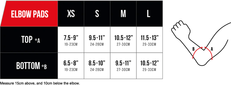 Aby dobrać właściwy rozmiar, zmierz obwód 15 cm powyżej oraz 10 cm poniżej środka łokcia i porównaj z rozpiską lub tabelką: