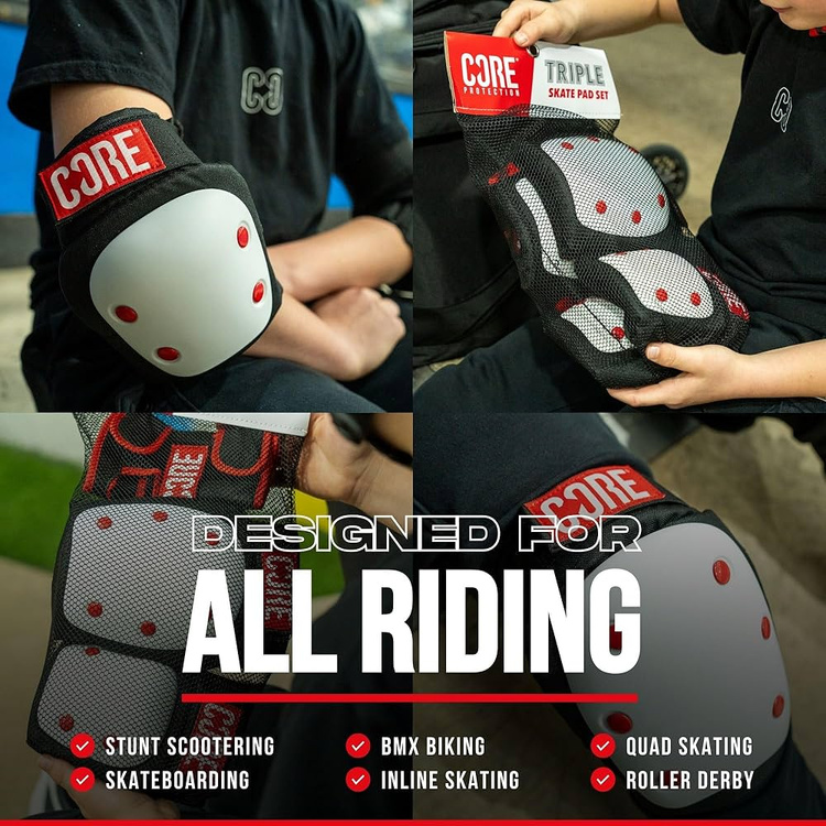 CORE Skate Triple Pad Set to pełny zestaw ochraniaczy zaprojektowany z myślą o intensywnej jeździe w skateparku i na streetowych spotach, gdzie każdy błąd może kosztować przerwę w jeździe. W jednym komplecie otrzymujesz ochraniacze na kolana, łokcie i nadgarstki, które sprawdzają się zarówno podczas nauki pierwszych tricków, jak i w trakcie intensywnych streetowych i skateparkowych sesji. To rozwiązanie dla skaterów i riderów na każdym poziomie zaawansowania - zarówno dla tych doświadczonych, którzy latają po najwyższych rampach i grindują na potężnych railach, jak i tych początkujących, zaliczających tysiące upadków przy stawianiu pierwszych kroków w swojej zajawce. Komfort, pewne trzymanie i realna ochrona sprawiają, że możesz skupić się na progresie i kolejnych trickach, zamiast na ryzyku kontuzji.